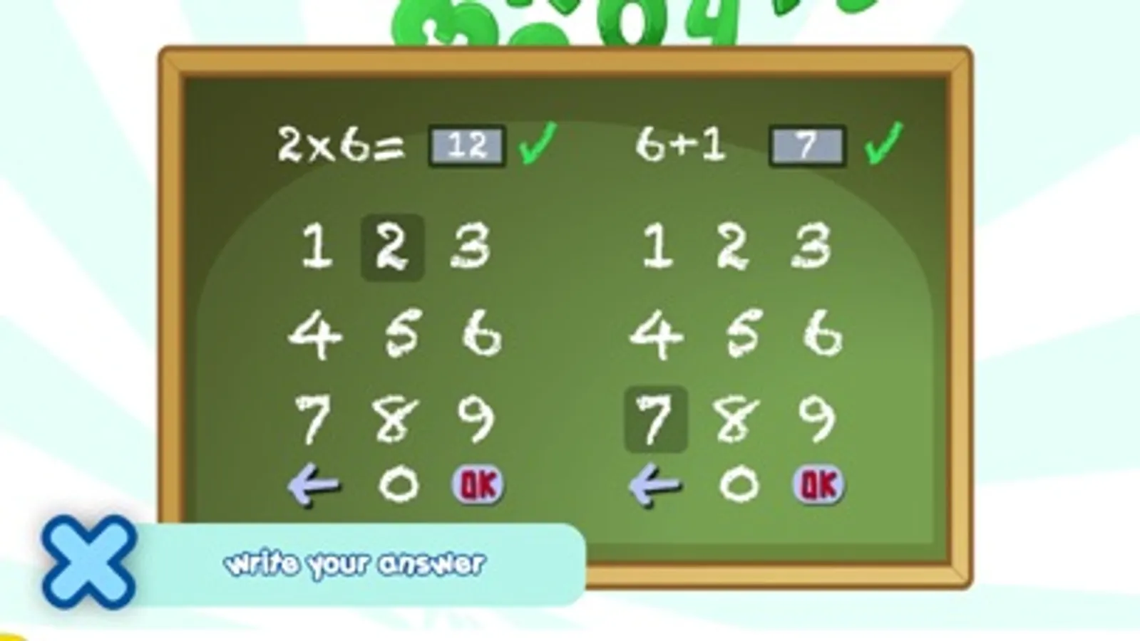 - Math Blackboard: Solve the operation by pressing the digits on the board and mark the correct result.