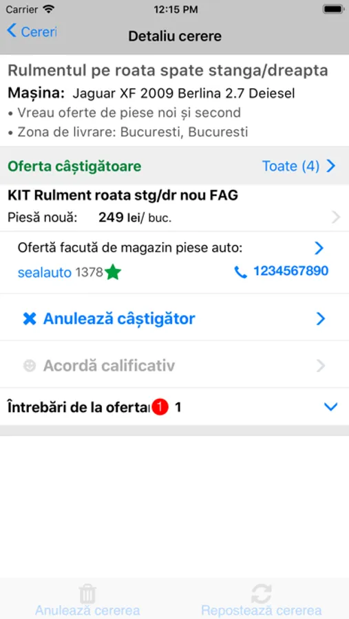 Usurinta: Dupa ce ai adaugat o cerere, aceasta va ajunge la toti vanzatorii de pe site care iti vor trimite oferta lor de pret. Tu trebuie doar sa compari pretul, calificativele vanzatorului, metoda de livrare si sa alegi OFERTA CASTIGATOARE in deplina siguranta, fara bataie de cap si mai ales fara griji.
