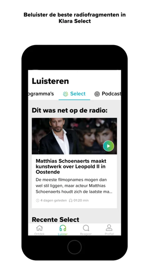 Met deze applicatie voor iPhone heeft u Klara altijd op zak. Zo kunt u snel, betrouwbaar, eenvoudig en in hoge kwaliteit uw favoriete Klara-programma’s beluisteren en herbeluisteren, waar en wanneer u maar wil. Dit alles in een herkenbare Klara-omgeving, met visuals van de componisten en/of uitvoerders en de presentatoren.