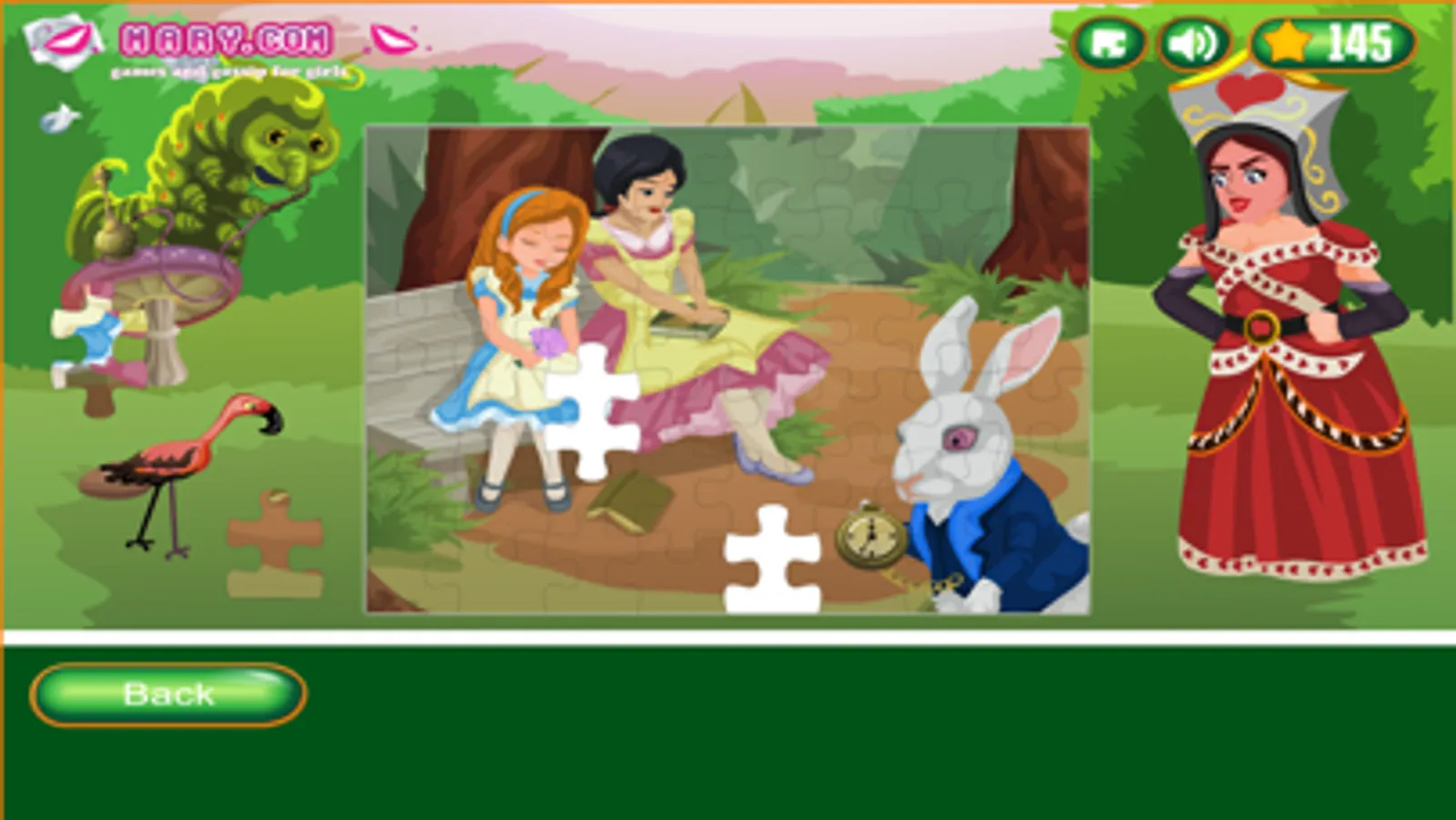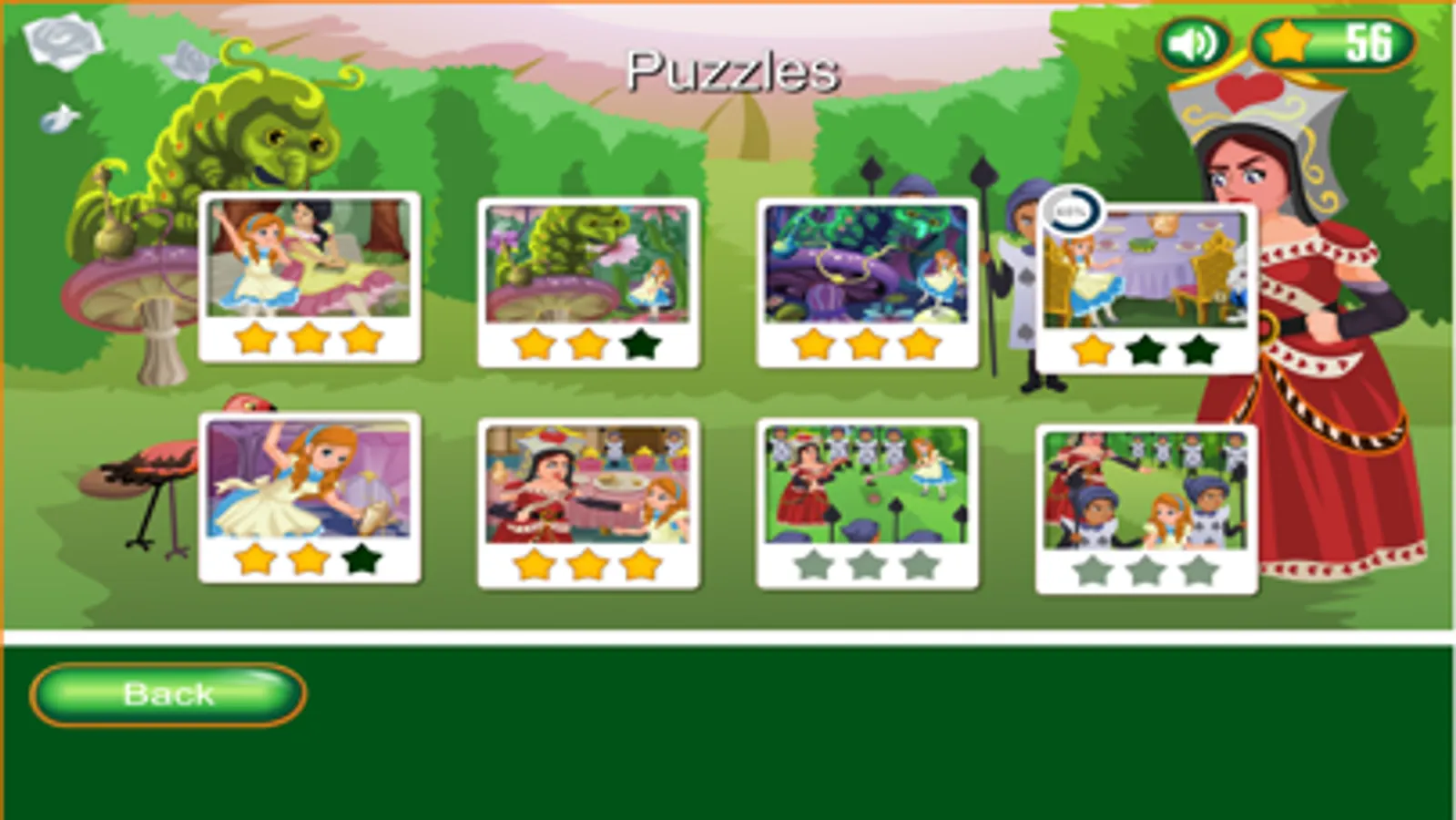 The design of the jigsaw puzzles is this app are based on the famous story of Alice in Wonderland by Lewis Carroll. All puzzles designs are created by mary.com especially for this app.