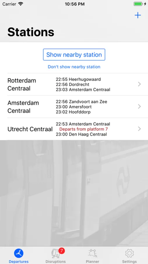 With Trein, see departures from a nearby train station in The Netherlands. Save your favourite train stations to also see departures for those.