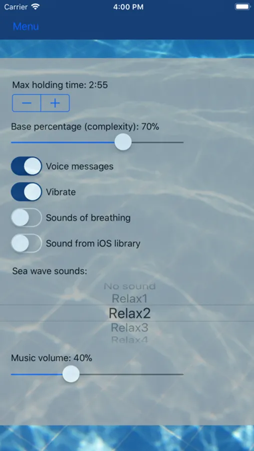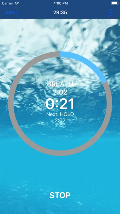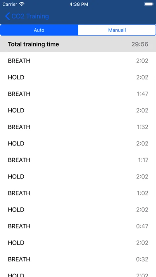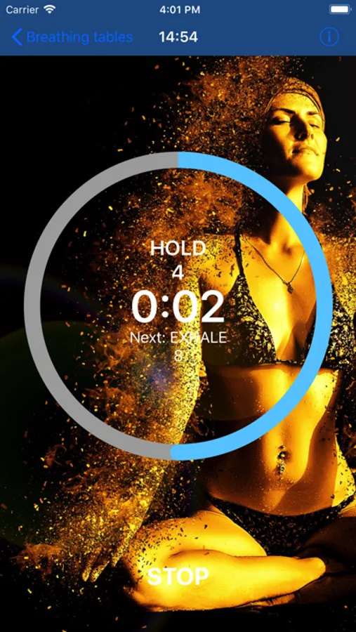 The App will work automatically. In order to individualize a training you first need to make an attempt with the maximum breath holding. To start take 3-4 warm-up attempts (about half the time of your maximum score). Then hold your breath maximally and save the result of your maximum breath holding. On the basis of this maximum breath holding training tables will be automatically calculated (table CO2 and table O2).