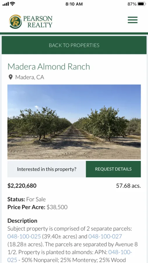 Looking to purchase agricultural properties, including farms, ranches, dairies, cold storage and ag packing/processing facilities? Find them right from your mobile phone with the Pearson Realty App. View a map that is based on your current location with all of our current listings. Easily adjust search criteria to find the right property, view photos and details of nearby listings, and contact the listing agent. We’ll keep you updated on our newest listings by sending notifications directly to your mobile phone. Looking to sell? You can review our agent profiles to find and contact the salesperson who is right for you.