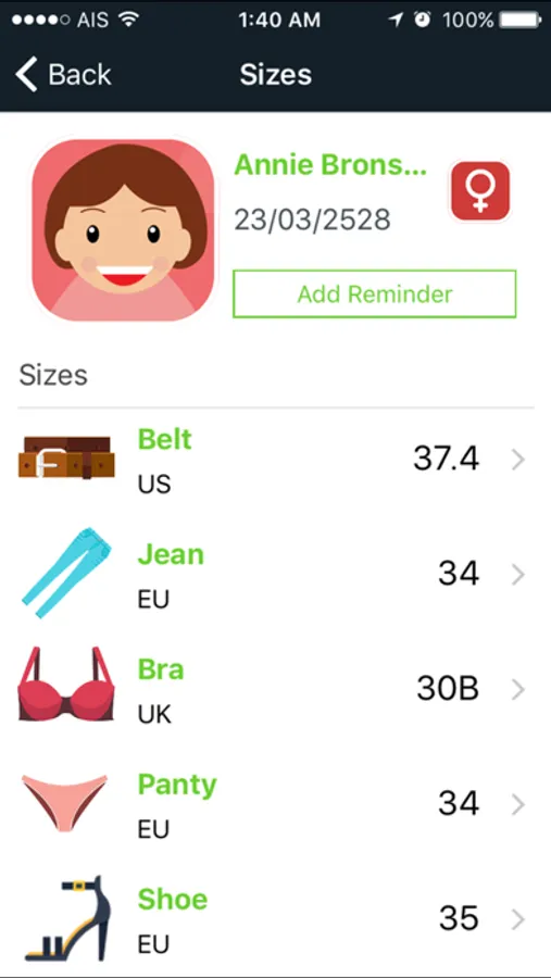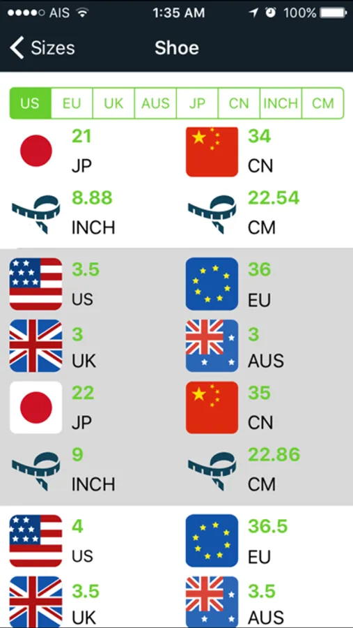 Application can help you to choose the right size of clothes in the U.S., Europe, the U.K. and China and Japan. All you need to know is one of the sizes,
