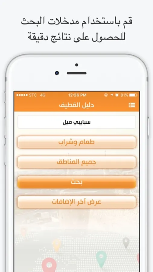 دليل القطيف الإلكتروني يوفر خدمة البحث عن المحلات التجارية والنقاط المتنوعة في محافظة القطيف كما يمكن من خلال التطبيق عرض بيانات مفصلة عن النقاط أو المحال التجارية وعرضها على الخريطة ورسم الإتجاهات بشكل تفاعلي وسهل