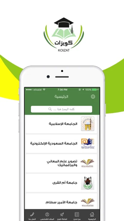 تطبيق كويزات لخدمة الطلاب والطالبات للوصول إلى نماذج اسئلة إختبارات الجامعات السعودية ويُمكن لكل فئات المستخدمين في الجامعة من البحث عن نماذج اسئلة الاختبارات