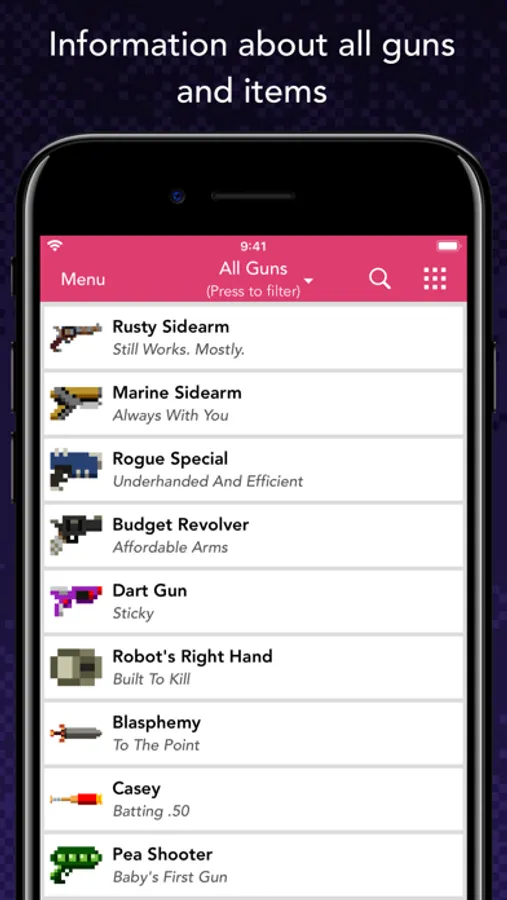 Quickly find all the information you need about the game Enter the Gungeon. Includes a global search where you can rapidly find the detailed info about the items and enemies you encounter during your gameplay.