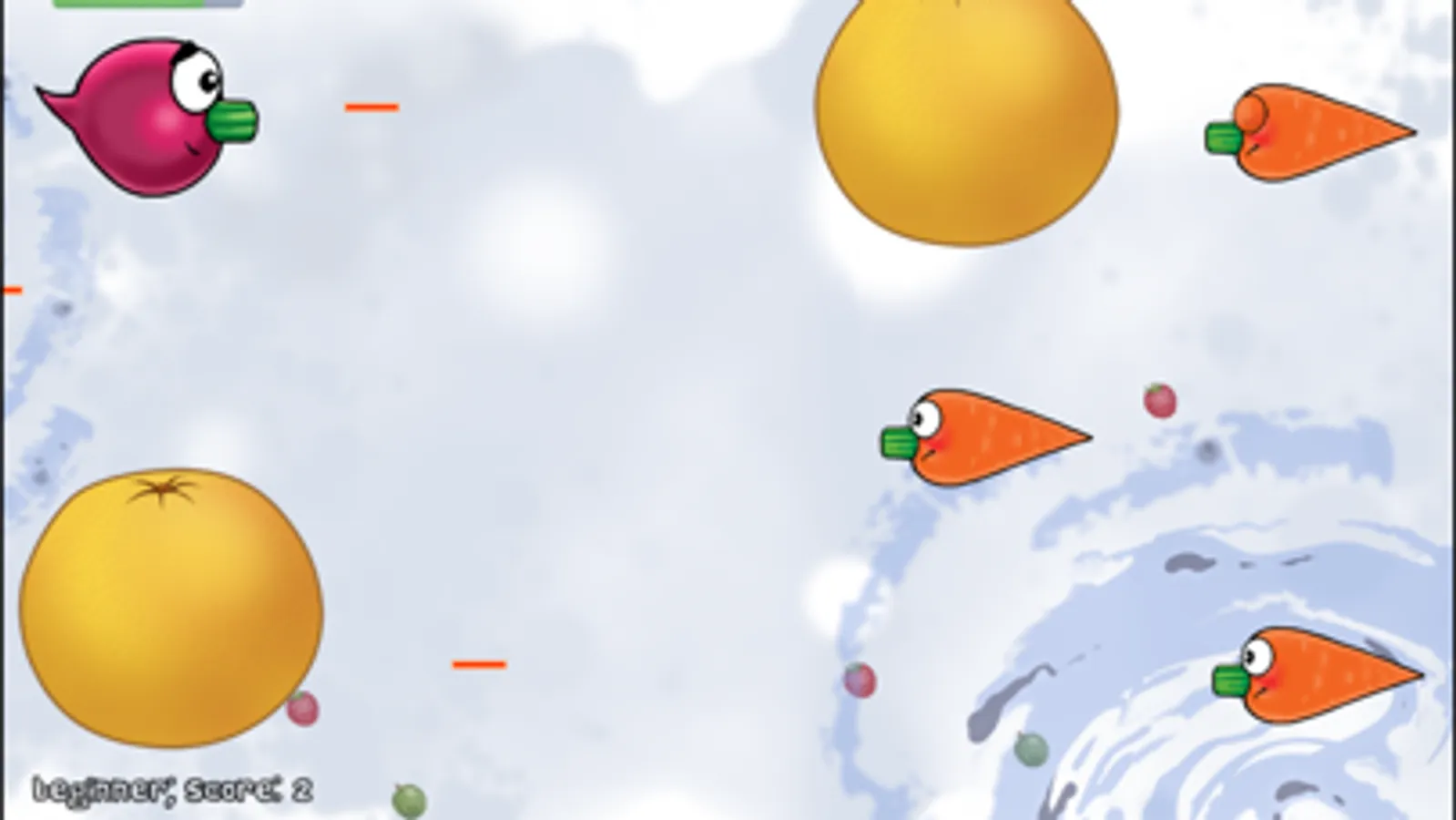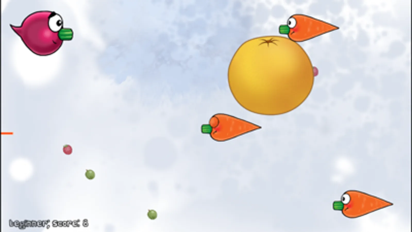 Your mission - is to play for the flying beet fighter named Billy and to pass all the levels. Shoot and defeat all enemies and flying obstacles: oranges, grapefruit and mandarins. Destroy the strongest enemies with advanced weapon power in the final levels in order to win.