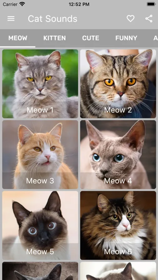 Collection of different types of meow sounds, kitten sounds, angry, cute, and funny cat sounds.