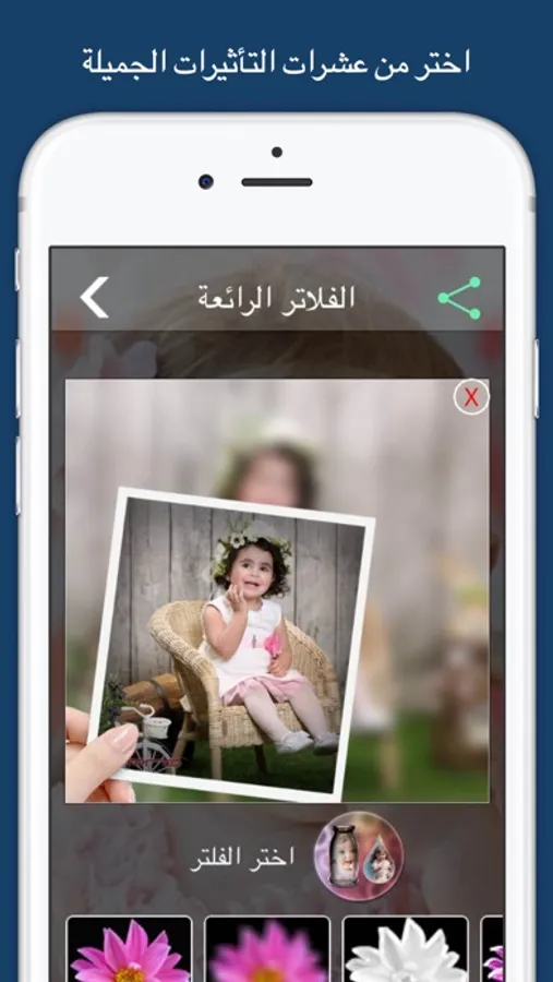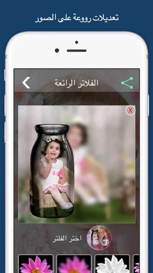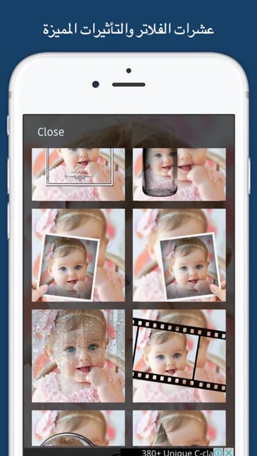 بامكانك باستخدام تطبيق تأثيرات الكاميرا السحرية التعديل على الصور الموجودة في حافظة الصور او الكاميرا و اضافة العشرات من المؤثرات مثل الاطار او الزجاجة او تأثير الكأس!