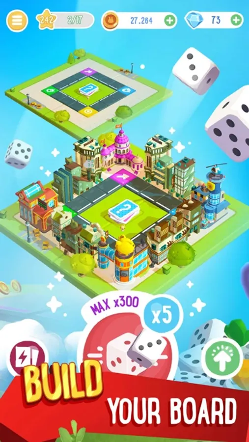 Welcome to Board Kings: multiplayer Board Game, where you can build and upgrade your own Board, and also travel to your friends’ Boards and attack their Buildings. Playing with your friends and family has never been so much fun! Build, upgrade, steal and destroy – it is all possible in this crazy Board Game.