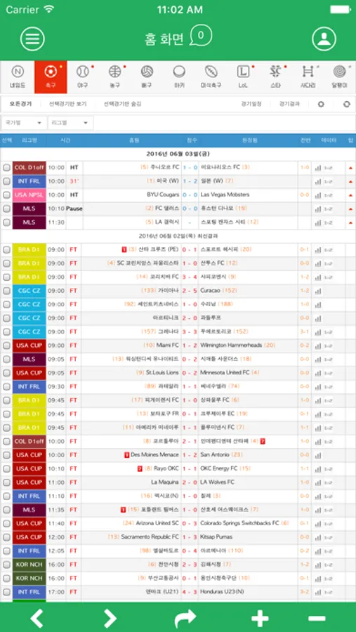 전 종목 실시간 스코어와 분석자료 조합픽을 하눈에 보실수 있으십니다.