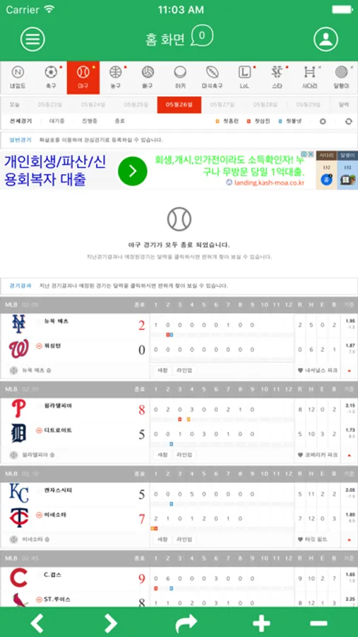 대표적인 스포츠 라이브스코어 어플! 야구 축구 농구 배구 등
