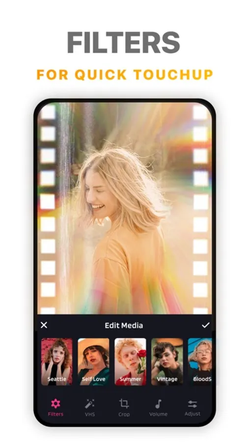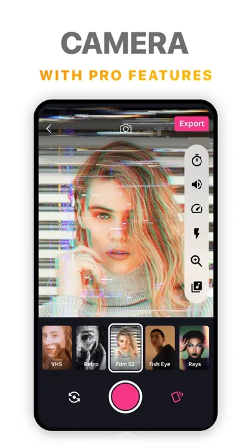 Choose from 30 carefully selected filters (and growing!) Add as many filters as you like to a single Video.