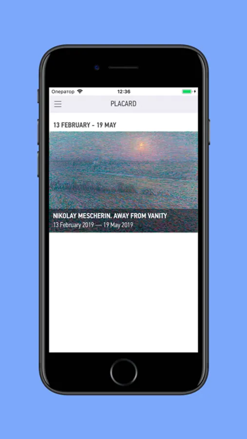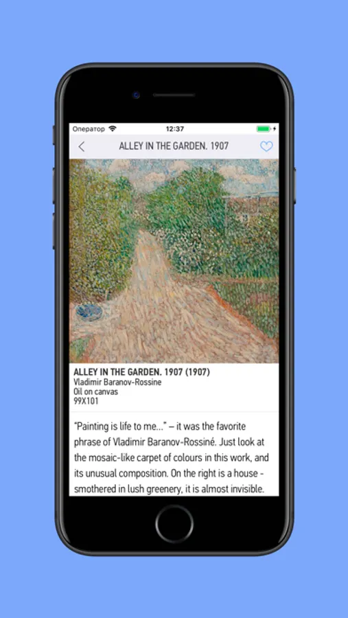 Having brought your mobile phone to the plate with the name of the picture on the screen, you will see the pictures closest to you. You will be asked to read information about the picture and its author. Having made a choice, you can listen to and view additional content.
