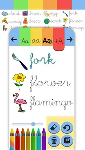 "With this alphabet coloring book game, learn ABC letters, practice handwriting worksheets, color drawings of animals, objects, numbers etc. and improve your vocabulary.