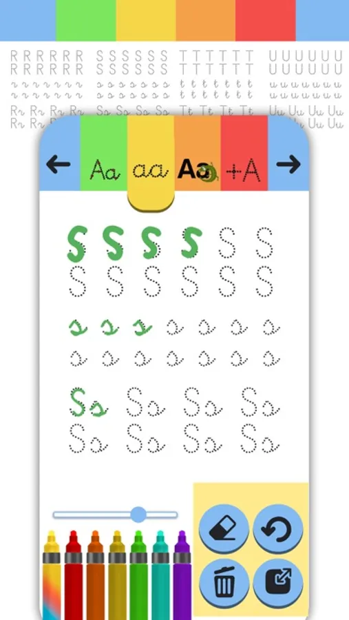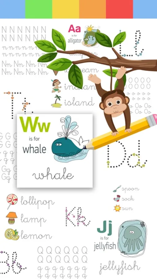 A wonderful game to practice handwriting, calligraphy and to learn alphabet letters with worksheets. If you are not fully familiar with alphabet letters, you can play alphabet game to learn letters correctly. Trace the lines or connect the dots. This is a great alphabet game for users who need still to learn ABC letters and need to practice in handwriting. Color each worksheet page with drawings of animals, objects, fruit etc. and learn new vocabulary.