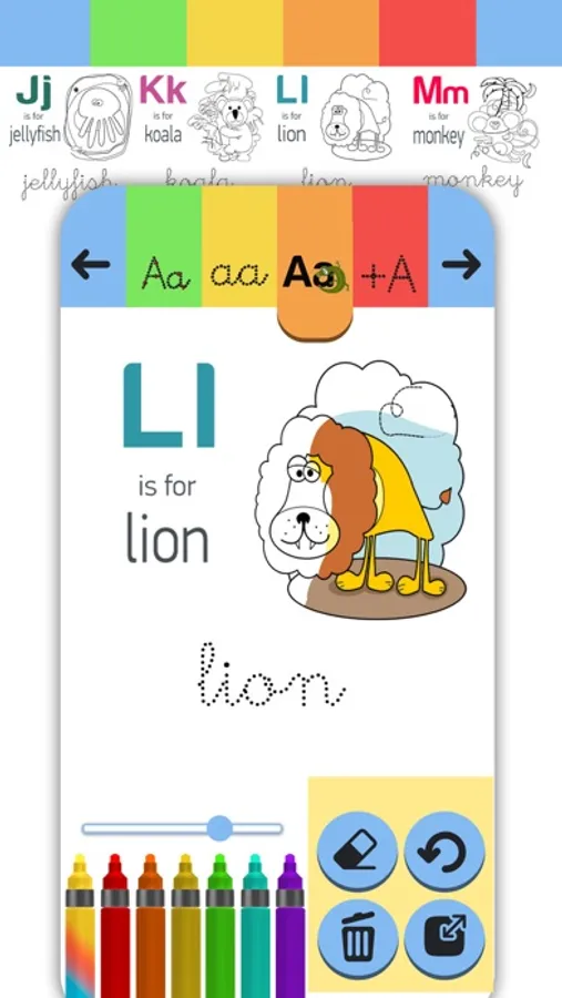 ABC learning games are also perfect for brain training with its educational background. Besides contributing to the development of vocabulary and memory, it also helps to improve motor and coordination skills. Based on the world famous Montessori learning method, our application allows you to learn how to write capital letters and small letters while learning new vocabulary and enjoying our coloring book activity. Learning letters has never been fun before! With these alphabet games, you will enjoy every moment!