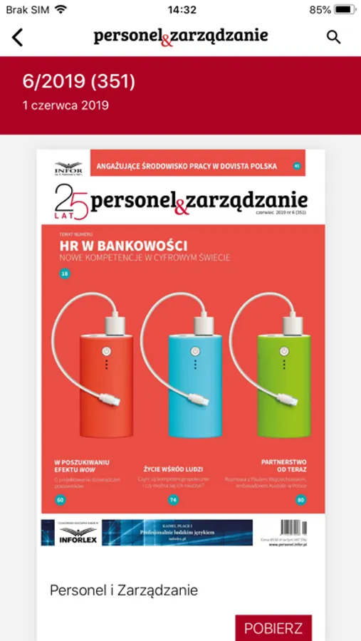 Aplikacja umożliwia kupowanie poszczególnych numerów miesięcznika w cenie 47,99 PLN. Ponadto miesięcznik "Personel i Zarządzanie" jest dostępny w systemie prenumeraty: