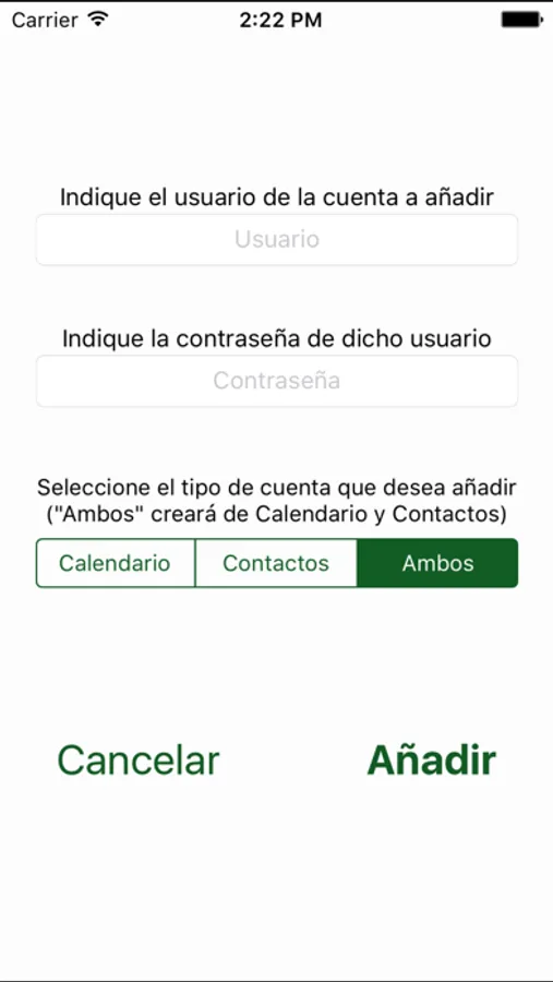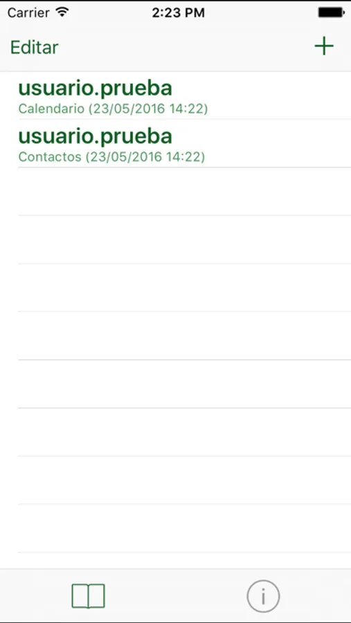 Ahora puede configurarlas simplemente introduciendo su usuario y su contraseña de acceso en esta aplicación. Esta genera un fichero de configuración que una vez instalado en su terminal, configura las cuentas indicadas y permite su utilización desde las aplicaciones de Calendario y Contactos oficiales de iOS.