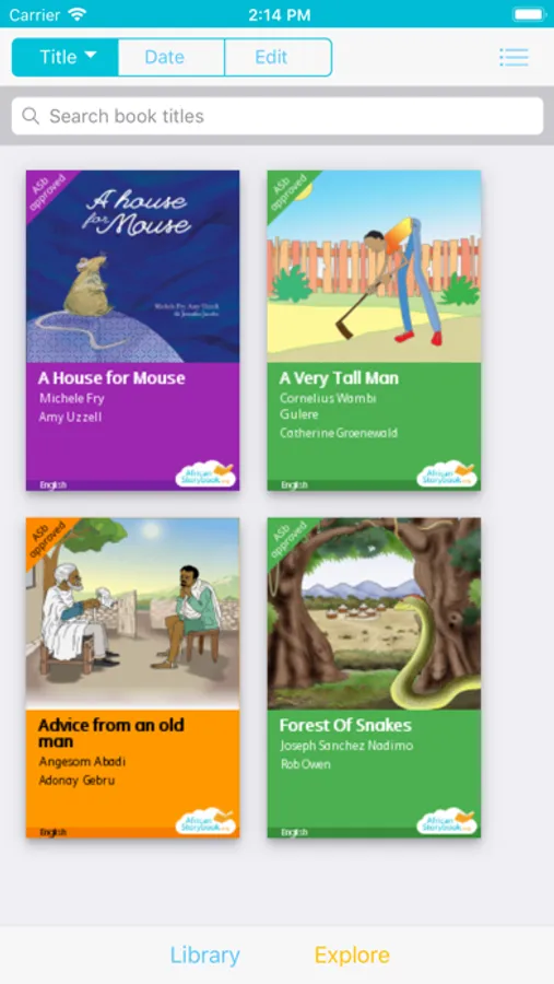 The African Storybook Reader allows the user to EXPLORE the collection of approved storybooks, and then download them in the desired languages into an offline library to READ.