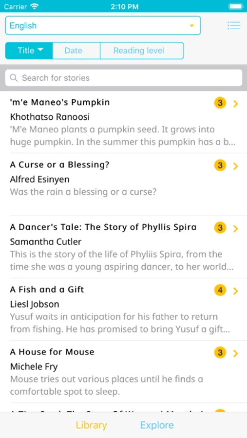 On EXPLORE, storybooks can be searched by language, latest stories, title, date and reading level.