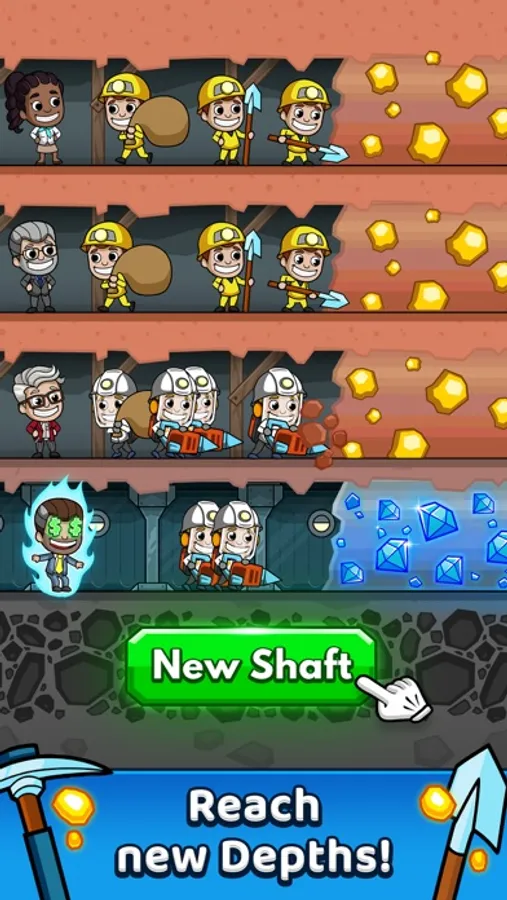 Expand your empire & give it a boost with managers that will automate the workflow of your mine! Take on the challenge and discover the best mining strategy and earn as much cash as possible!