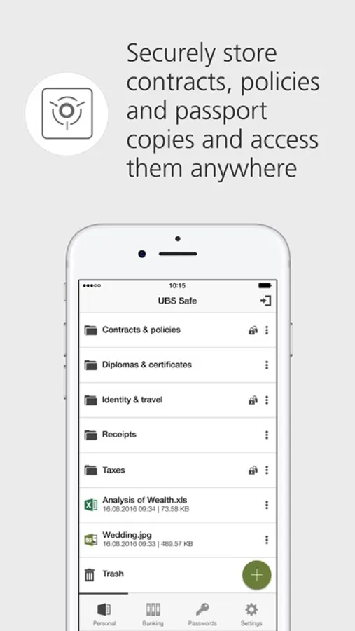 ID copies, contracts, passwords or banking documents: the UBS Safe App provides a safe place for your data.