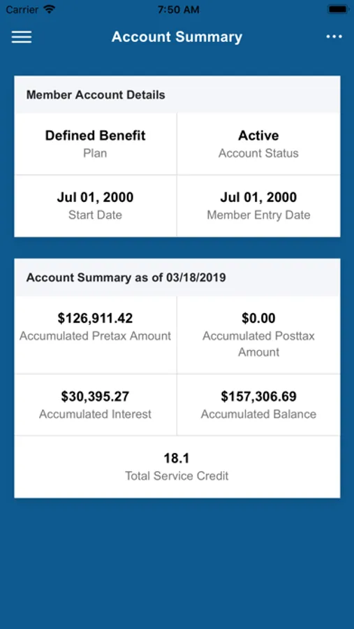 - Summary, which includes the current account balance and service credit as of the latest reporting by your employer.