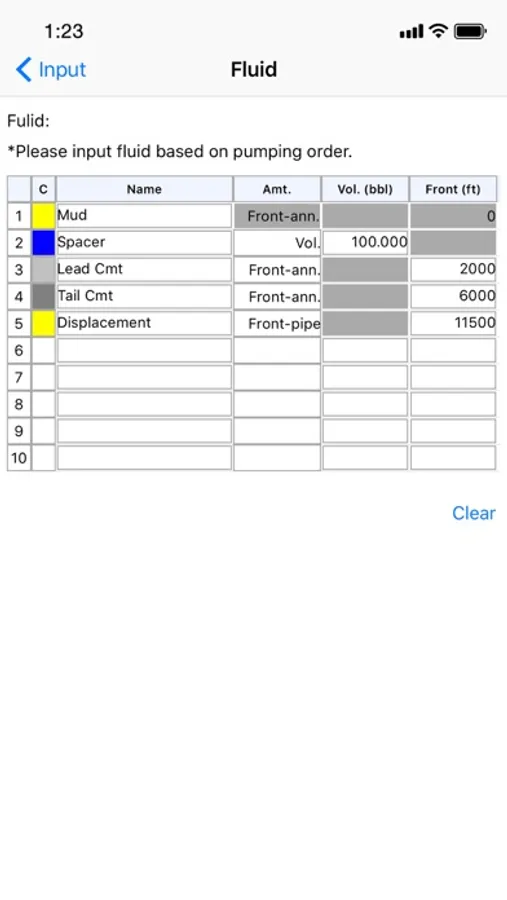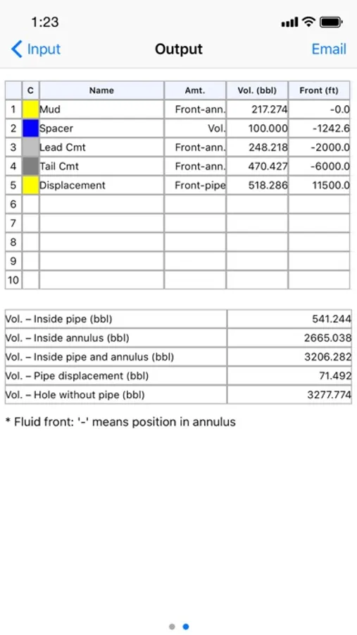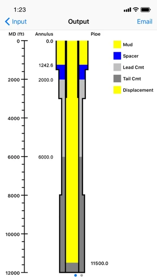 The CEMPRO Lite app can handle up to 10 pipe sections and a maximum of 10 circulating fluids.