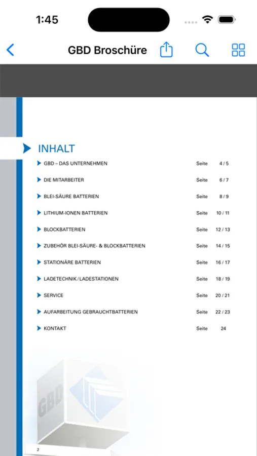 Mit der App der GBD Geraer Batterie Dienst GmbH erhalten Sie neben Informationen zum Unternehmen die komplette Übersicht aller Prospekte, Verkaufsunterlagen, Infobroschüren etc. zu den einzelnen Batteriekategorien. Aufgegliedert nach Themenbereichen können Sie Ihr gewünschtes Produkt herunterladen - schnell und kostenlos.