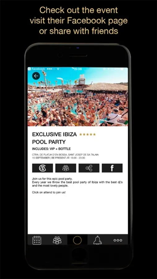 - Connect with your friends: find your friends; invite them; attend an event as a group; party together.