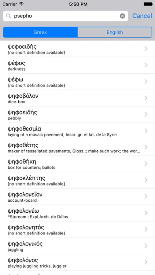 - Browse any of the dictionaries painlessly by section, or search for entries directly. Search for Greek entries using the built-in Greek keyboard, Latin transliteration, or standard Beta Code.