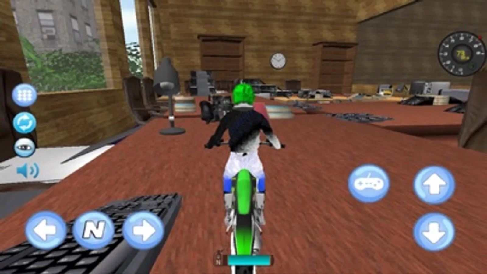 Office Bike Game: Racing Simulator is an arcade bike racing game for free! Race your dirt bike over the desks doing stunts, jumping over everyday obstacles! Think you've got what its takes to be an extreme motocross riders? Then this fast speedy racer Office Bike Game: Racing Simulator is yours for free now!