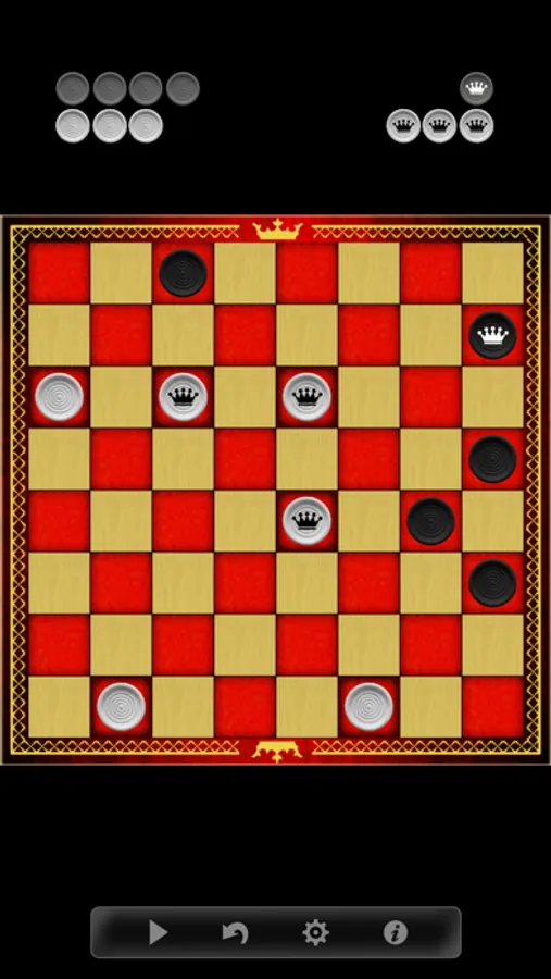 The game plays according to Spanish Checkers / Portuguese Checkers rules.