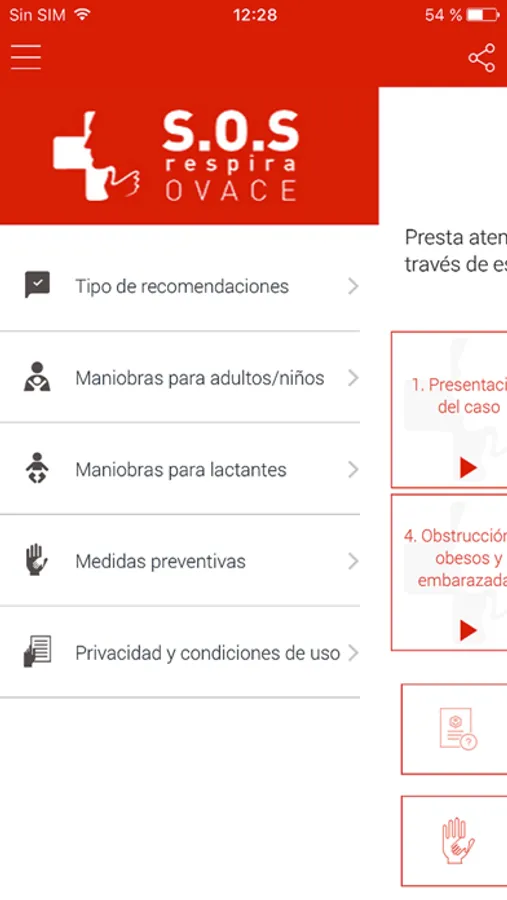 SOSrespira uses videos and diagrams to provide you with a simple guide to learning the correct sequence of actions and maneuvers to resolve cases of choking.