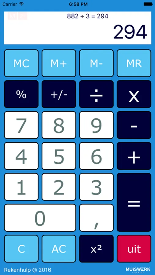 De Rekenhulp App heeft bijna dezelfde functies als de rekenhulp van de Muiswerk Online omgeving en is daar van afgeleid.