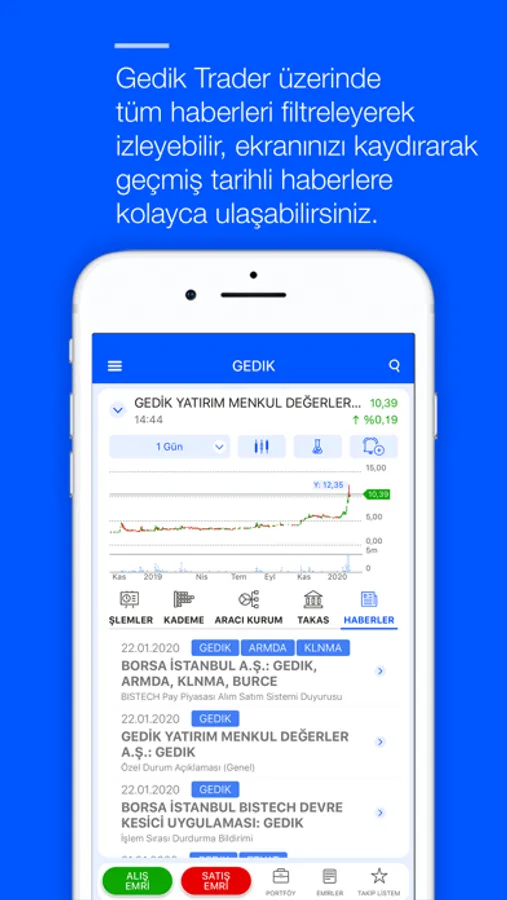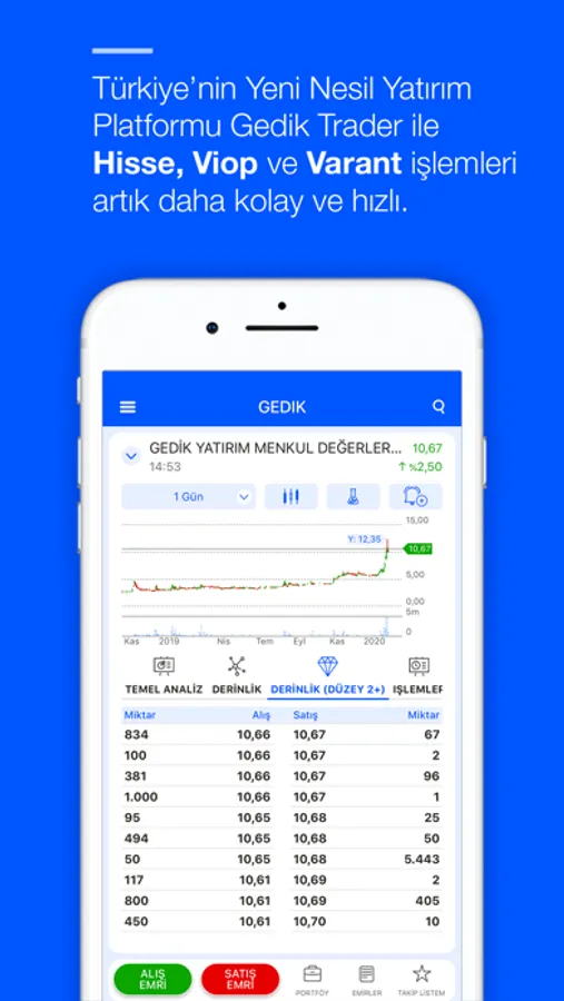 With Gedik Trader, Gedik Investment's new generation investment platform, you can trade stocks, VIOP and warrants on Borsa Istanbul, view BIST 100 and BIST 30 data, purchase in-depth data, access news and analysis free of charge, and share your comments..