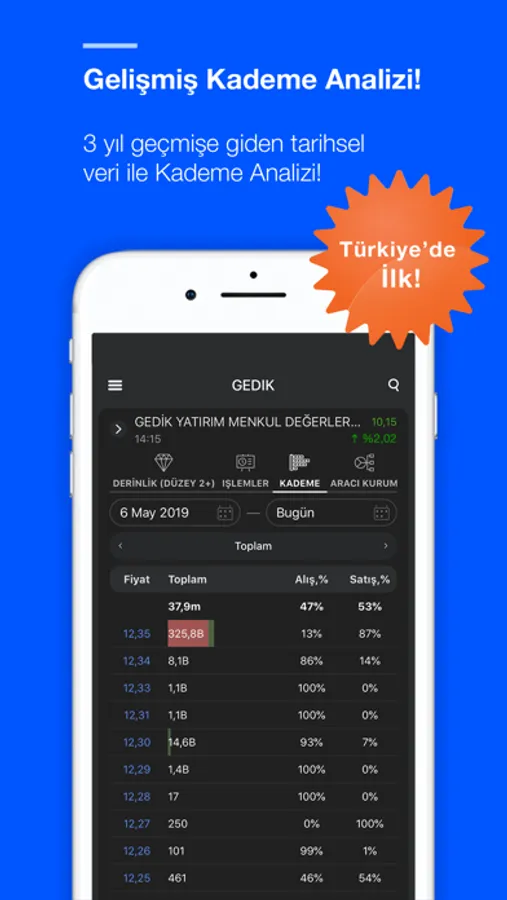 First in Turkey! Advanced Rank Analysis! You can analyze at which prices and how much shares have been traded both daily and up to three years in the past.