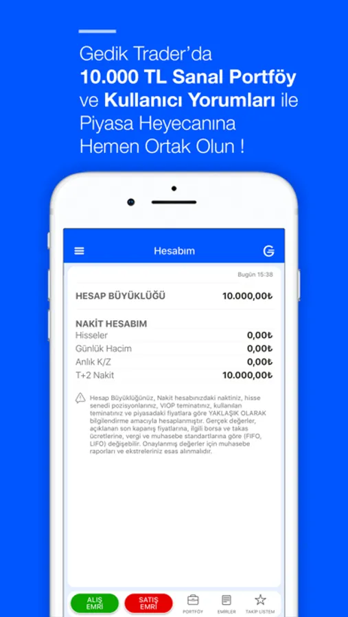 10,000 TL virtual portfolio with the ability to perform trial transactions