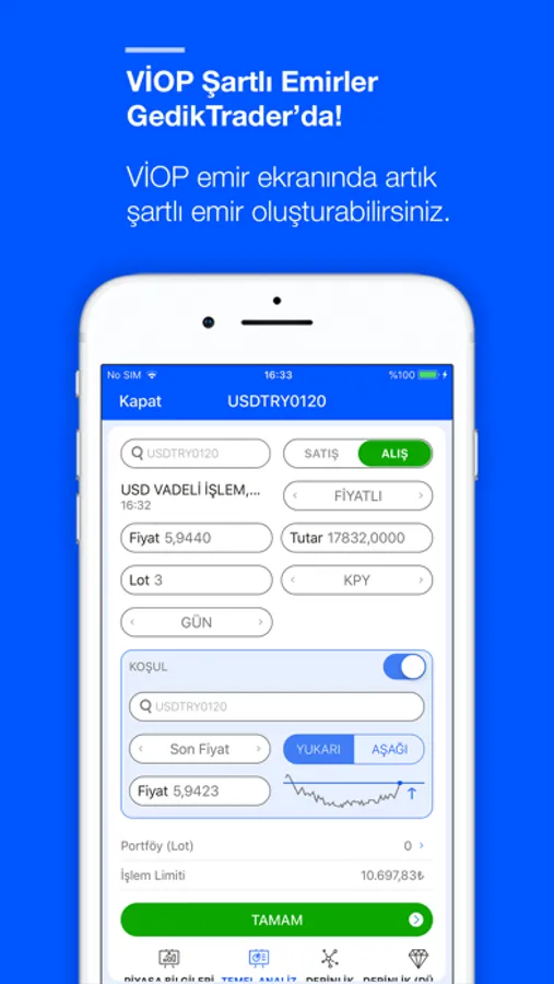 Even if you do not have a Gedik Investment account, you can log in to Gedik Trader as a member, purchase an instant data package and follow the markets, and trade with a virtual portfolio of 10,000 TRY.