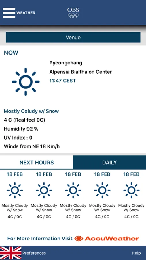 The OBS mobile app delivers relevant broadcast-related information to OBS staff the Rights Holding Broadcasters for PyeongChang 2018. Please note that this app has restricted access and can only be opened with an OBS-provided key.