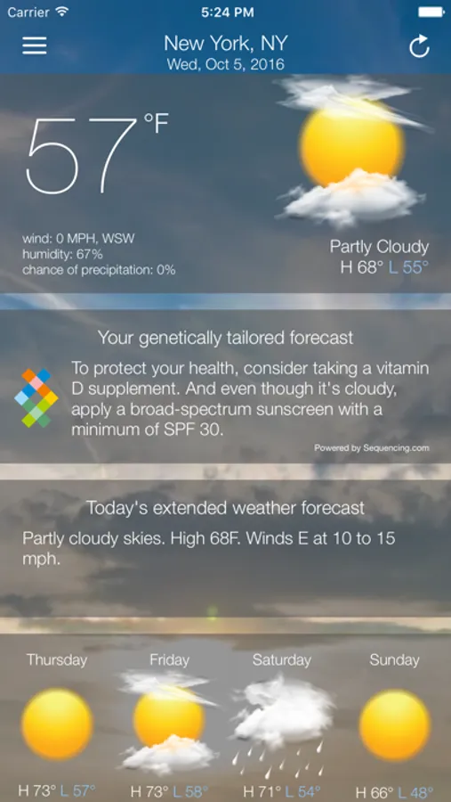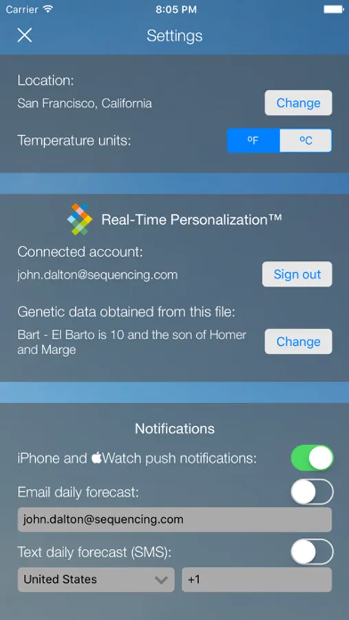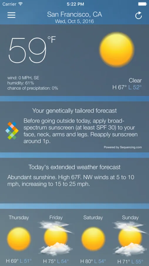 ▸ This is not just another weather app. Weather My Way uses Sequencing.com's Real-Time Personalization (RTP) technology to securely access and understand your genes!
