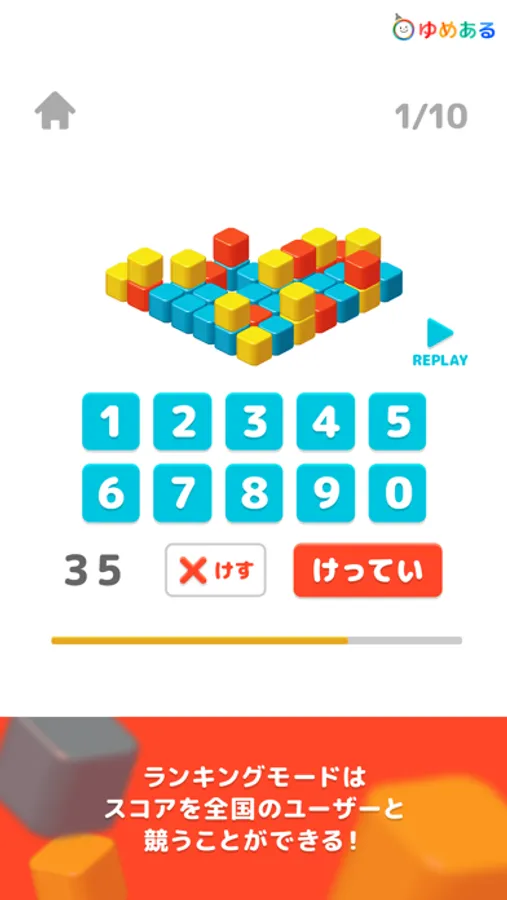降ってくるキューブの数を答えるだけ。