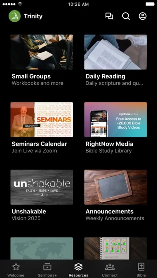 With the Trinity App, you can connect with Trinity wherever you are. Access the latest sermons, daily reading, events, resources, and more.