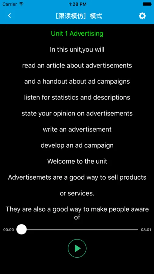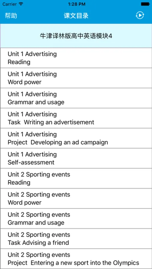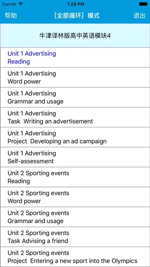 本应用对应牛津译林版高中英语模块4课本。,具有跟读模仿,自动听写,变速播放的复读机功能。
