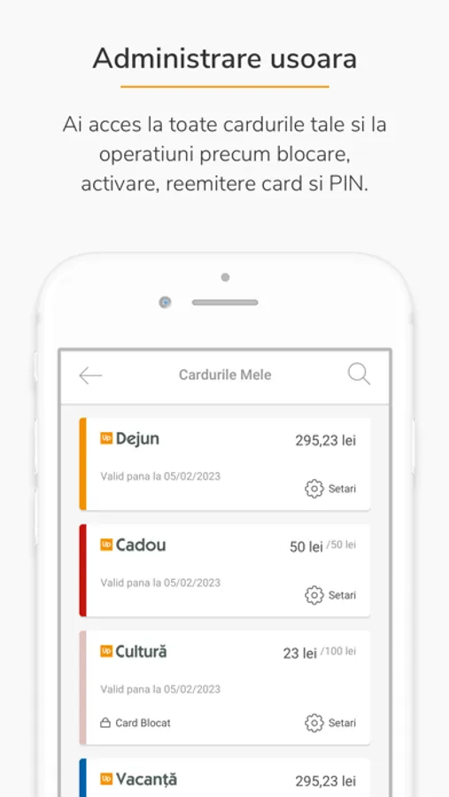 • Afli cu ușurință la ce magazine poți folosi cardurile Up
