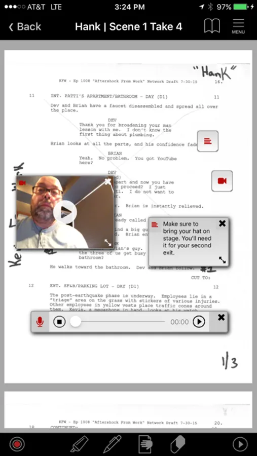 Rehearsal® Pro is the app for that. It, and its predecessor, Rehearsal® 2, featured in the New York Times, Fast Company, LA Magazine and BACKSTAGE, became the entertainment industry standard for cast and crew to organize their scripts for auditions and working on set. Battle tested in Hollywood and around the world by professional actors and acting students.