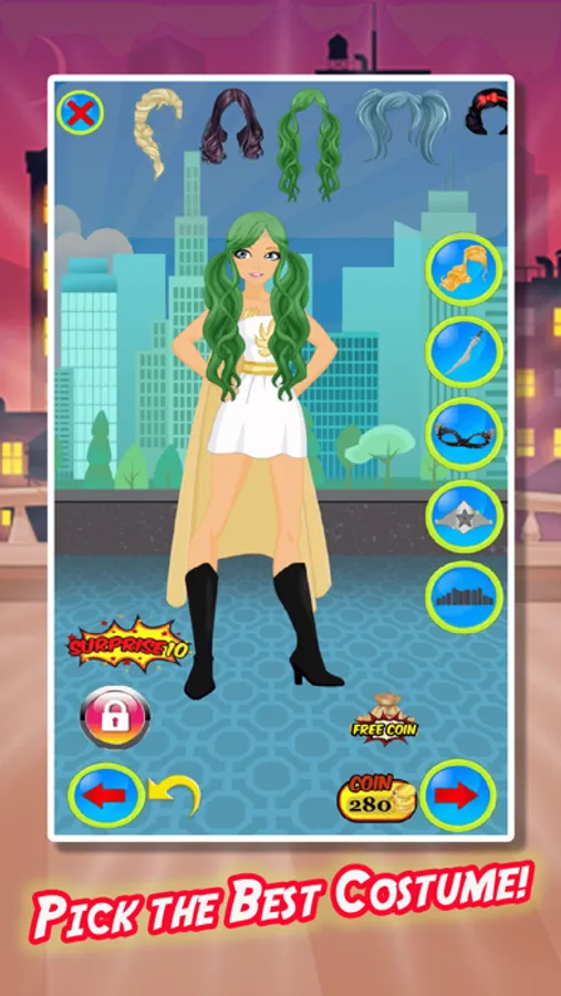 Dress yourself as a Superhero girl would! You have tons of possible combinations to dress accordingly to your favorite style. Choose your top, bottom, hair, shoes, and accessories as you see yourself becoming the most fashionable Superhero fan!