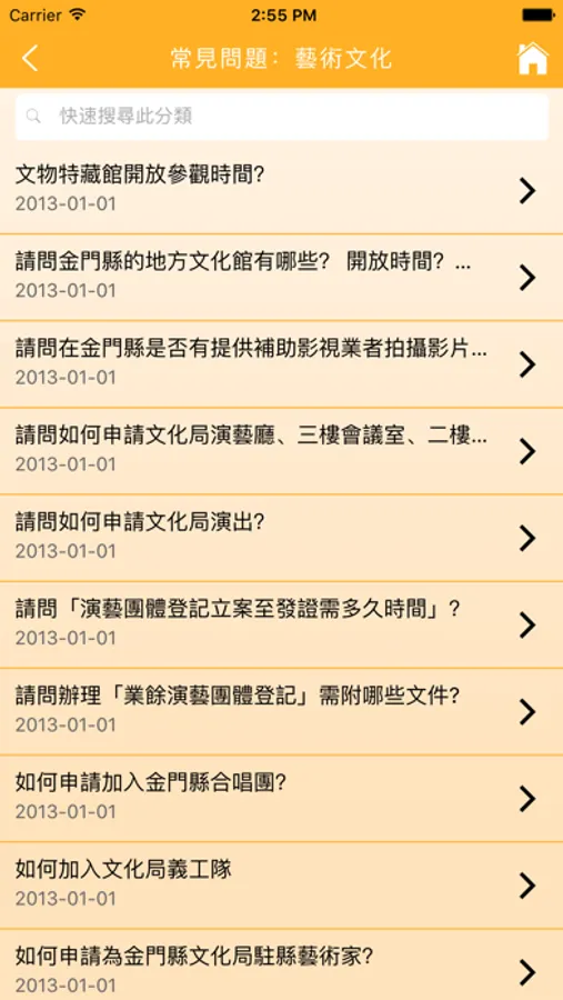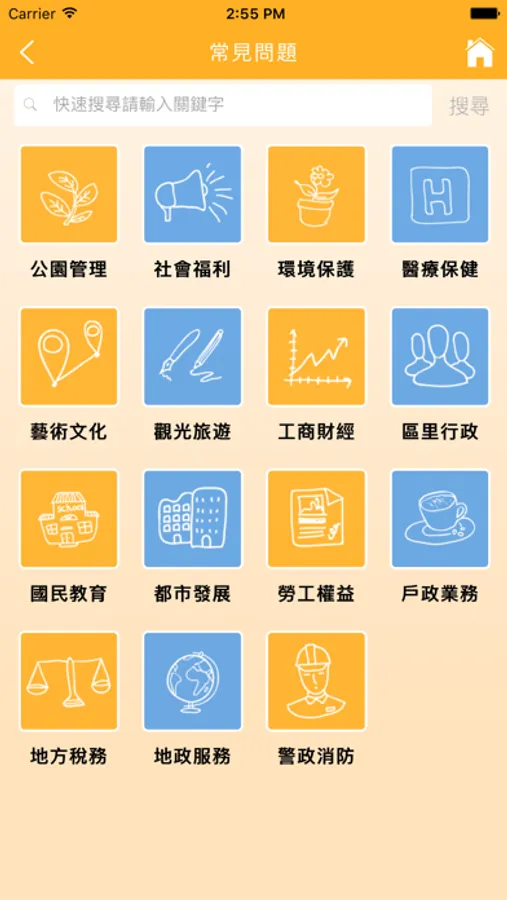 【常見問題】讓民眾可以在遇到問題時進行各類型常見問題的查詢並觀看問題的答覆。